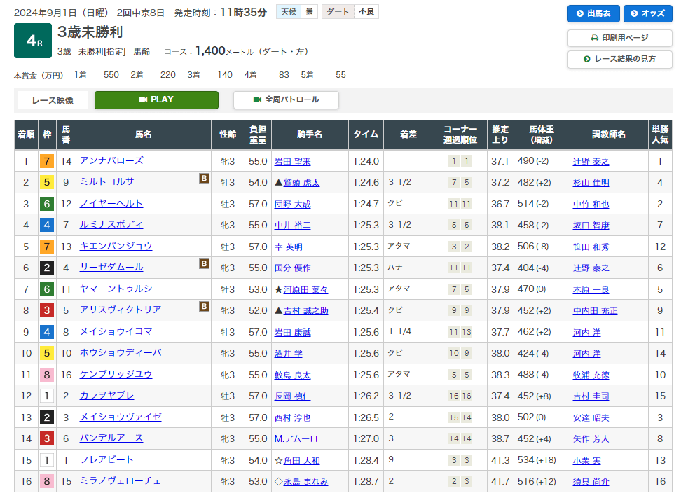 9月1日・新潟6レース 2歳新馬 芝1400m