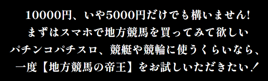 今回【地方競馬の帝王】を3日に渡って検証しましたが、5レース分で的中はわずかの1レースでしかもトリガミでマイナスという結果になりました。