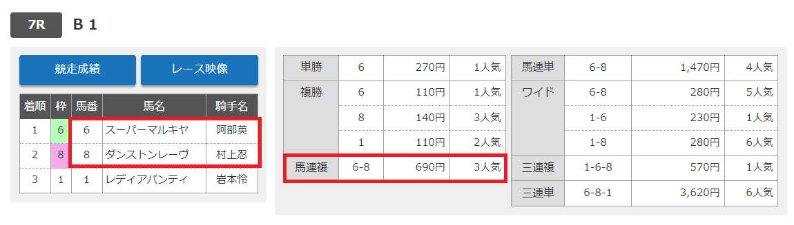 3番人気の⑧を軸にして2着には来ましたが、1番人気の⑥は切っていましたね。