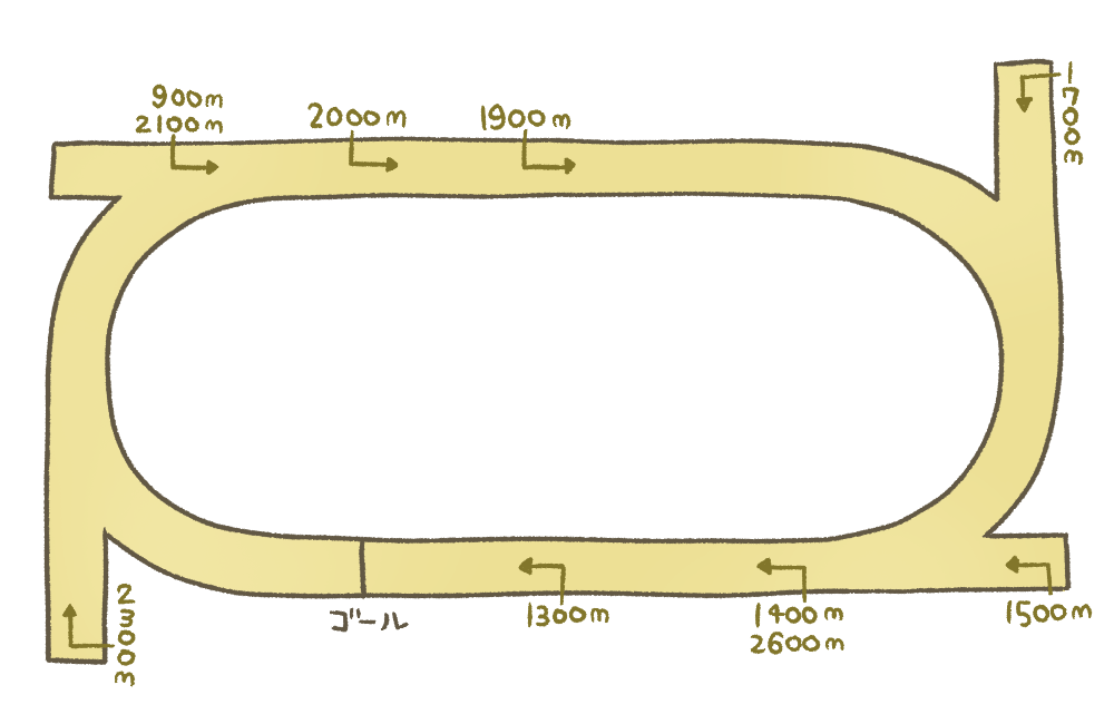 内側の馬場の砂厚が深いので、内を空けてレースを進める馬もいますが、内枠よりも外枠の勝率が高い傾向にあります。