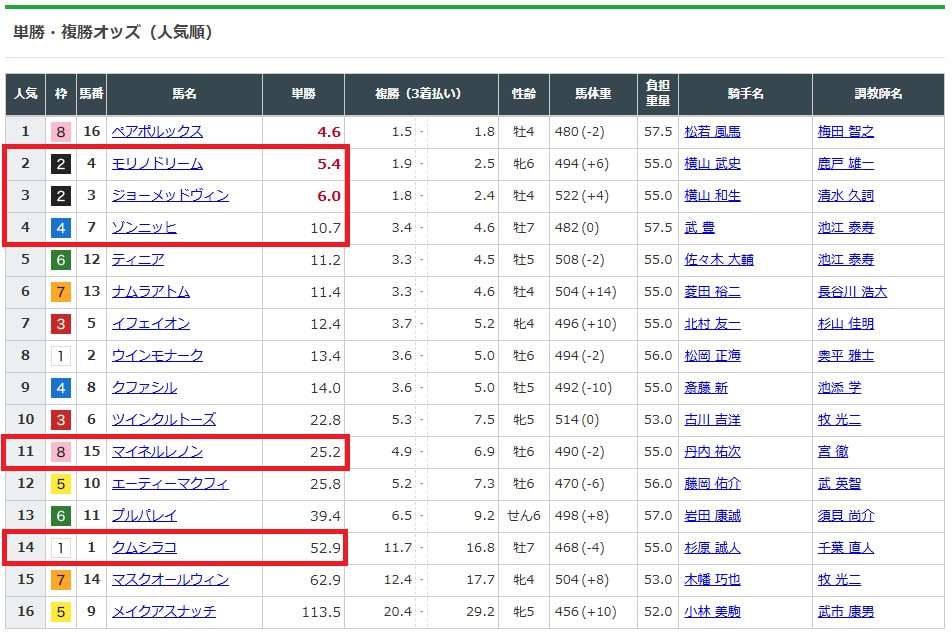 それにしても1番人気馬でも単勝オッズが6.5倍は混戦すぎますね。