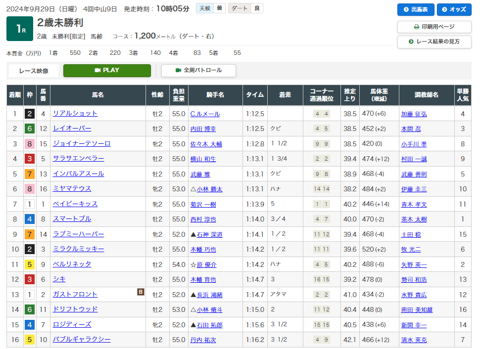 9月29日・中山11レース スプリンターズステークス(GⅠ)3歳以上オープン 芝1200m