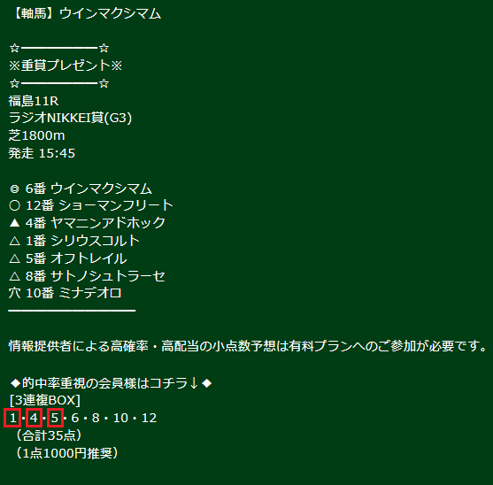【無料情報】ラジオNIKKEI賞(G3)7万円的中!