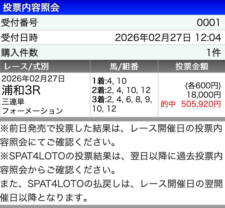 小倉大賞典予想的中ありがとうございました。 買い目画像もPAT画像もスクショ撮り忘れてしまったけど 711倍を3連単10点1点500円で的中 35万5500円、回収率も異常な数値… 先週知ったけど、平場も多めに予想出しているし、今週は先週以上に稼げそうな感じだな。