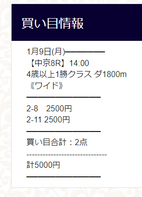 8しか来んかったー(^_^;)これ当ててフェアリーステークス買う予定が狂っちゃいましたね
