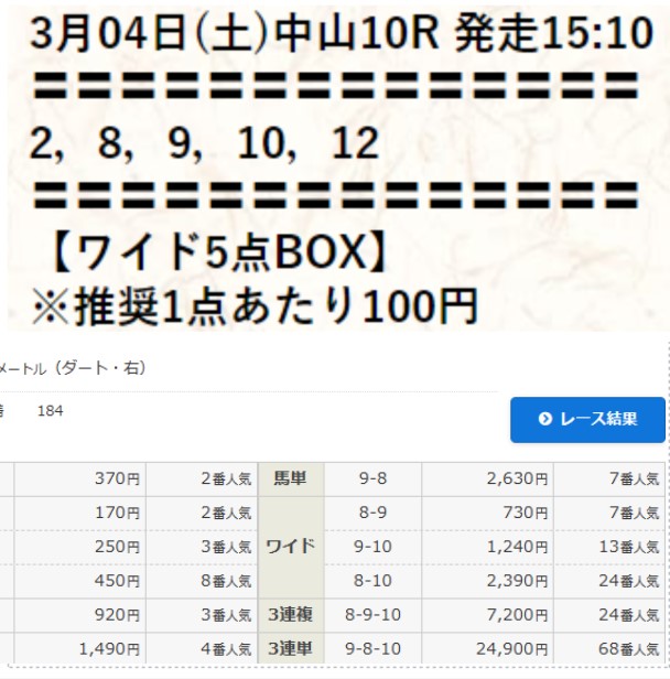 ワイド3頭とも選んでて4,360円もらえた🙌 ワイドでも十分!!