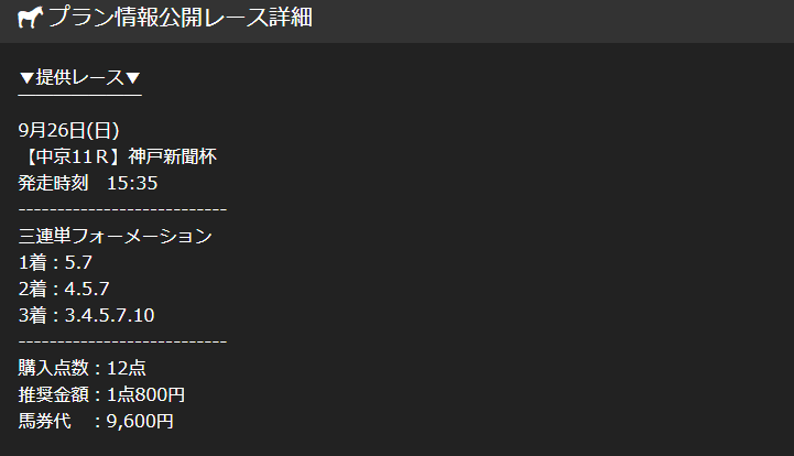 1万円を切る馬券代で神戸新聞杯的中。