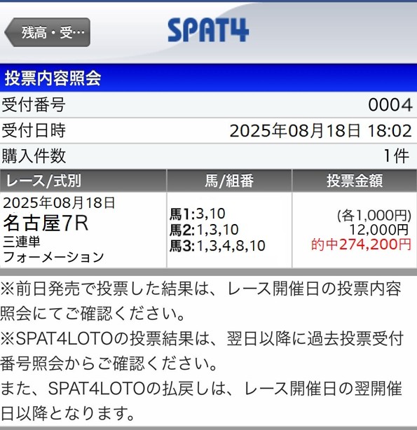まじでエグイ的中貰えました!! リポートの管理人さんもLINE限定のガチ予想で京都大賞典3連複当ててたけど上位互換といってもおかしくない3連単予想でブチ当ててました、競馬好きな人とか競馬関係に携わってるとこんな大荒れレースさらっと当てるんかい?! 470万5500円ものちょー大金ゲットです! 追記、普段やらないけど土曜日キャリーオーバーしてたWIN5は馬蹄さんの予想に乗ったディープモンスターだけ当たりました(笑) 御見それいたしました、
