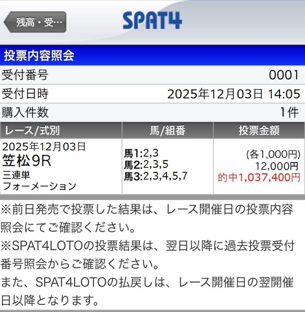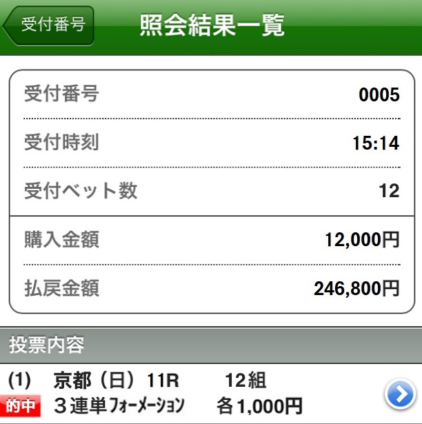 28,780円も付いたから朝一から14万3900的中ありがとうございました!
