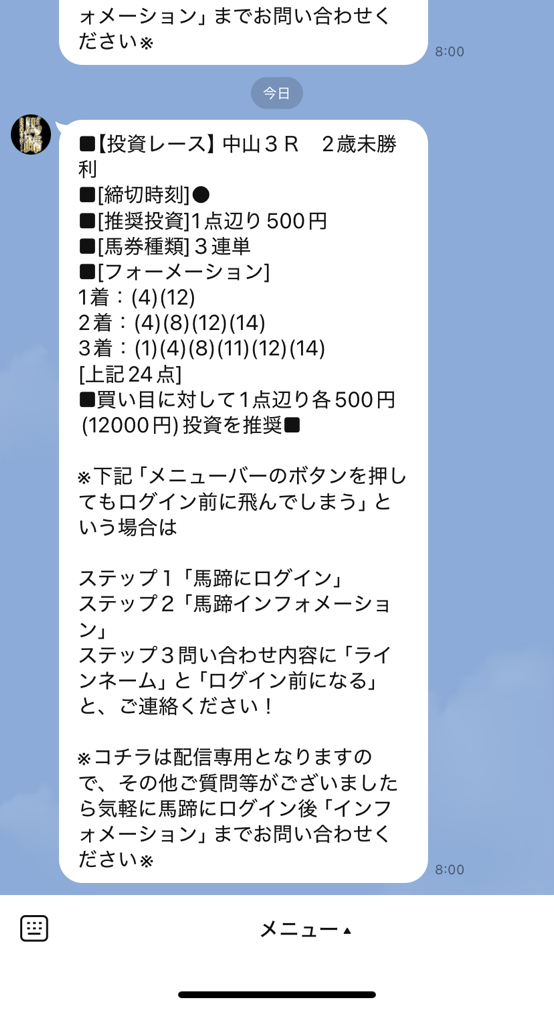 LINE限定無料情報で朝一から万馬券もらえました12-4-11で的中! 28,780円も付いたから朝一から14万3900的中ありがとうございました!