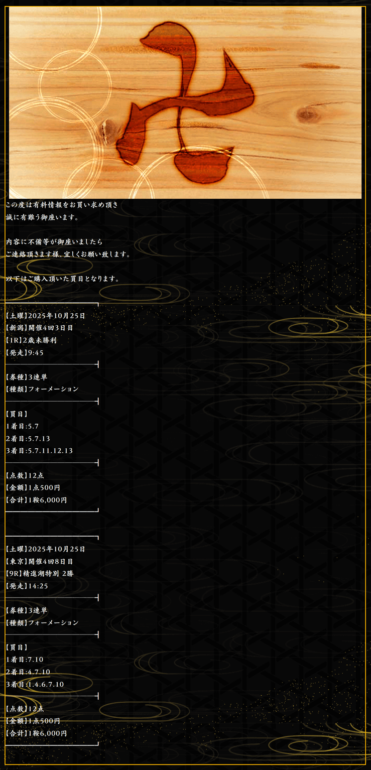 毎週利用させてもらっているけど、なんだかんだで10万前後の的中が安定して狙える無料情報ってここだけかも!