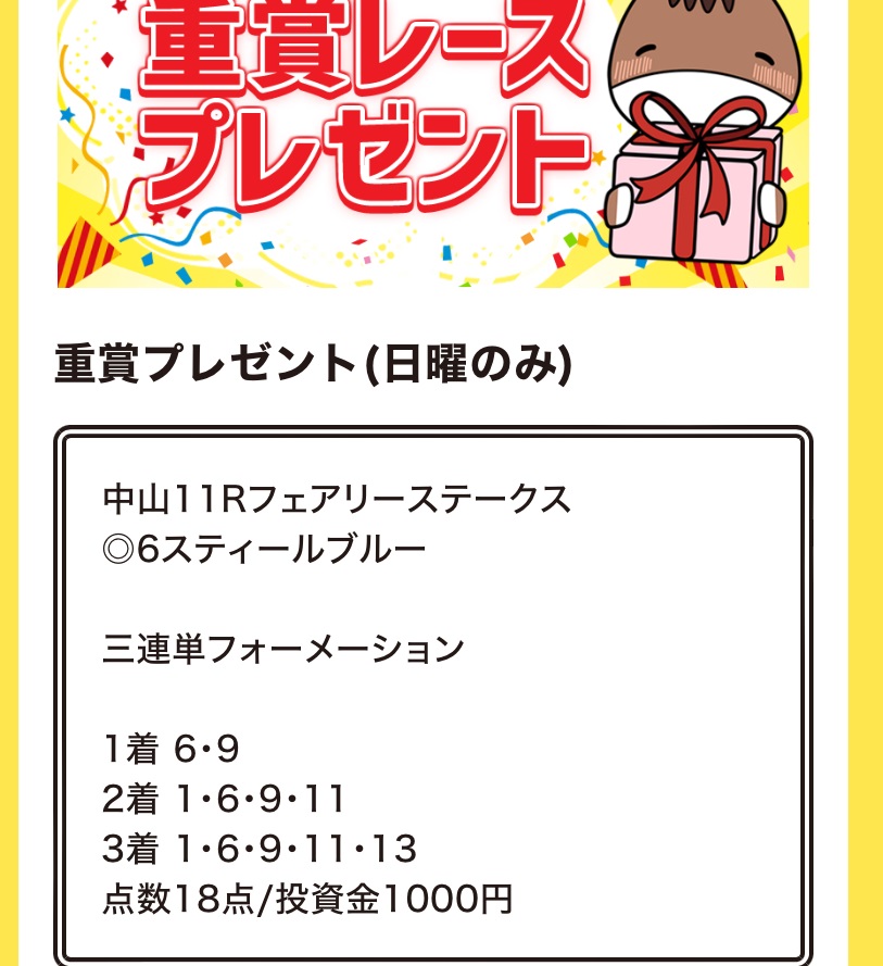 かすりもしない予想をありがとうございます もったいないことしたな 普通にうまいもん食いに行けばよかった