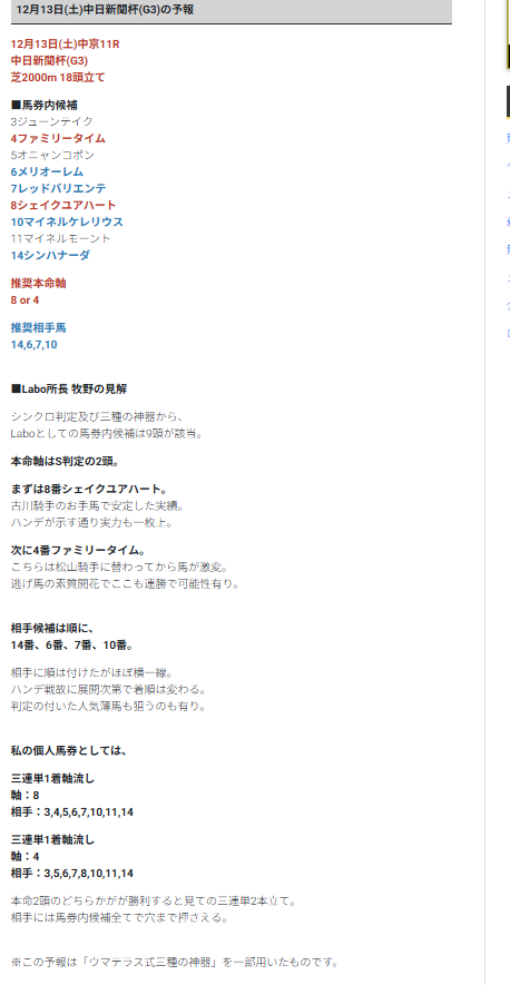 有馬記念の無料予想も期待しています、見解付きだから凄い信用できますね、納得できるし確信つく予想毎週楽しみにしています!