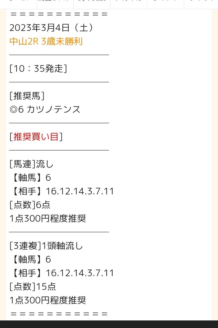 だめでした、一応日曜日の無料情報です。 スクショしておきました。