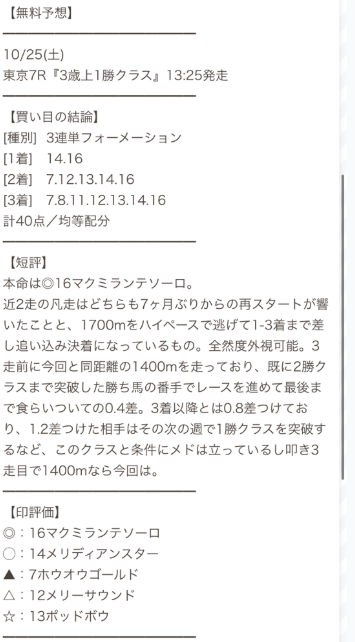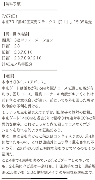 こんな感じの無料予想でした。 結果は残念でした… 使わない方がいいのですかね。