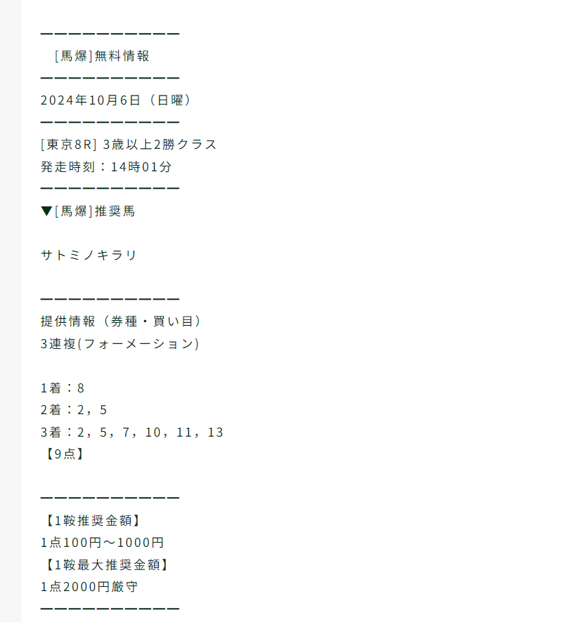 馬爆さんの無料情報で的中もらえましたね(^o^)/