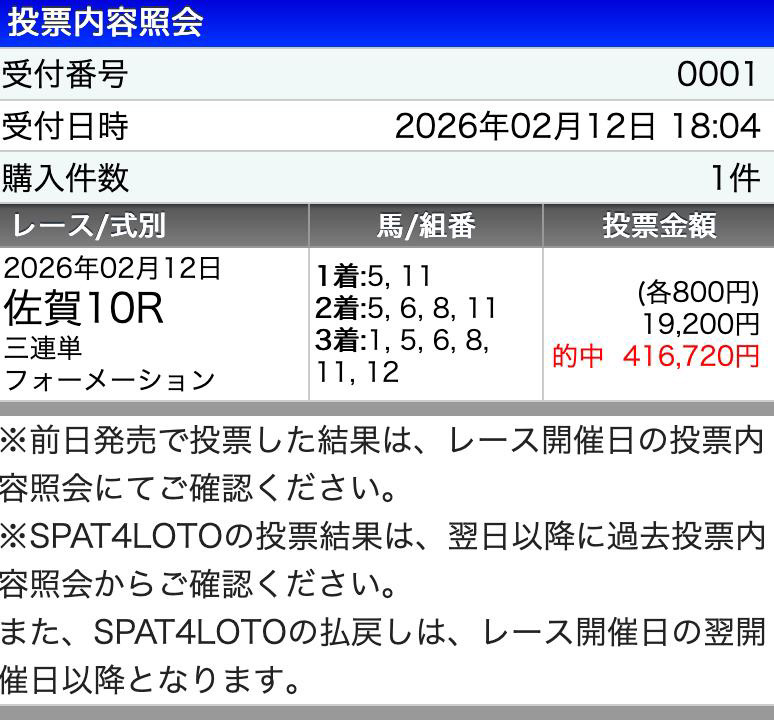 今回もありがとうございます、的中おめでとう!の結果でした。