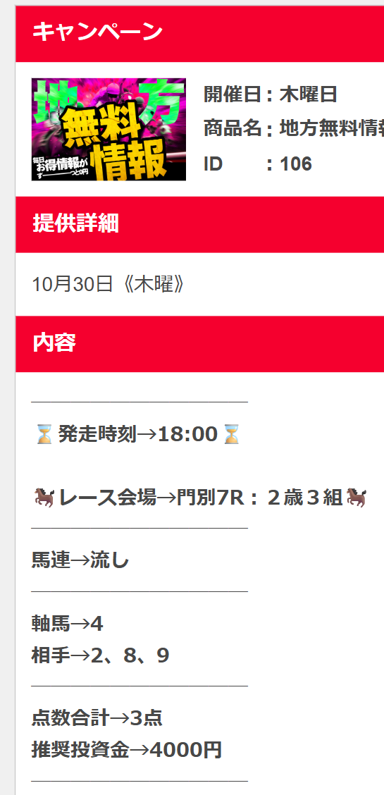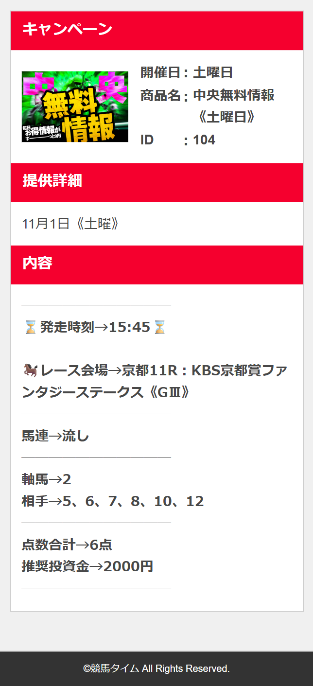 初見利用のファンタジーステークス無料予想10万越え払い戻しの10万4400円的中貰えました♪ 有料情報試す価値ありそうです☆