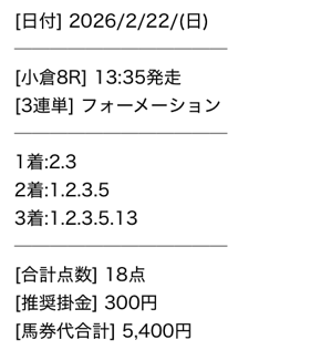 小倉大賞典予想的中ありがとうございました。