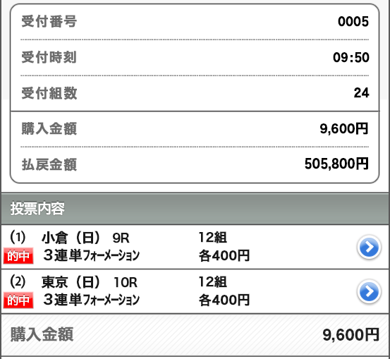 G1裏開催の小倉、高配当当ててもらいましたわ。 G1はガチガチだったし、こっちも買っておいてよかった。 5400円の馬券代、点数18点で1475850円的中。 気になるサイトではあったから1度は使ってみたいと思っていたけど使って正解でした。